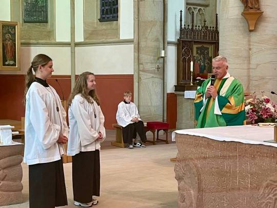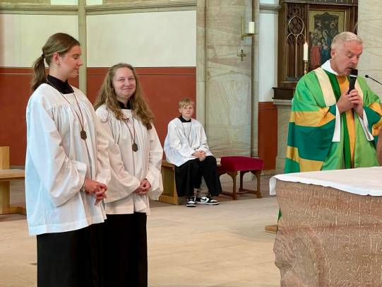 Im Vorabendgottesdienst am 20. September dankte die Pfarrei St. Franziskus Fulda langjährigen Helferinnen und Helfern für ihren treuen Einsatz und verabschiedete sie in neue Lebensabschnitte. Besonders geehrt wurden unter anderem Frau Farnung und Frau Blachnick für den Blumenschmuck sowie Frank und Anja Schneider und Jorina Übelacker für ihren Dienst am Altar. Aus dem Kreis der Messdiener wurden Anne Happ, Noah Mattheß und Emely Roth verabschiedet. Neu als Obermessdiener begrüßt wurden Marie Müller, Sophia Reith und Johan Winner. Ihnen allen gilt ein herzliches „Vergelt’s Gott“ und Gottes Segen.